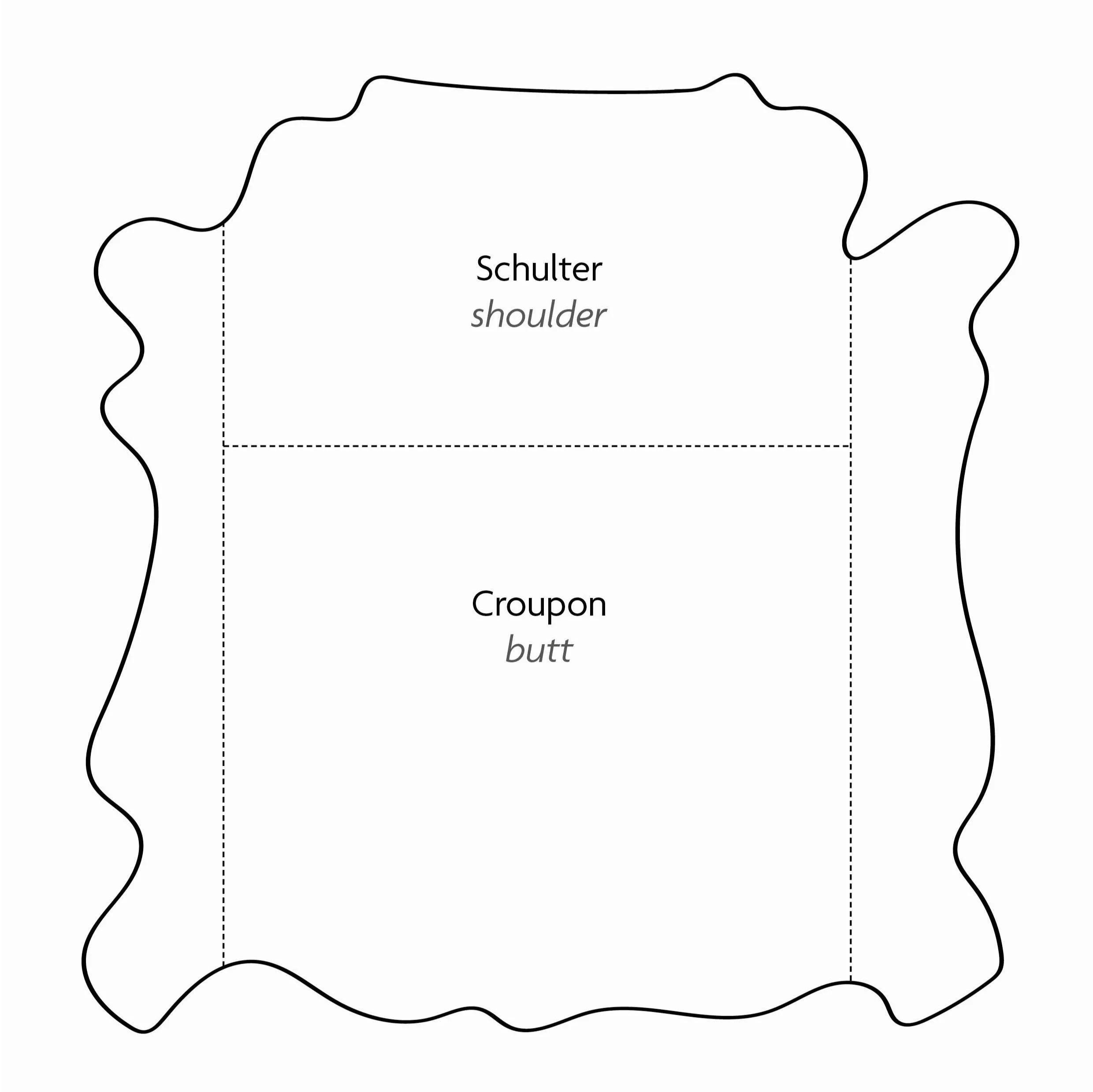 Jede Partie wird als vollständiges Lederstück verkauft. Kleinere Zuschnitte sind nicht erhältlich.