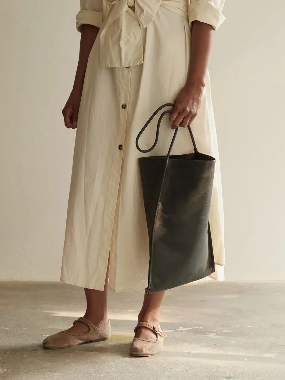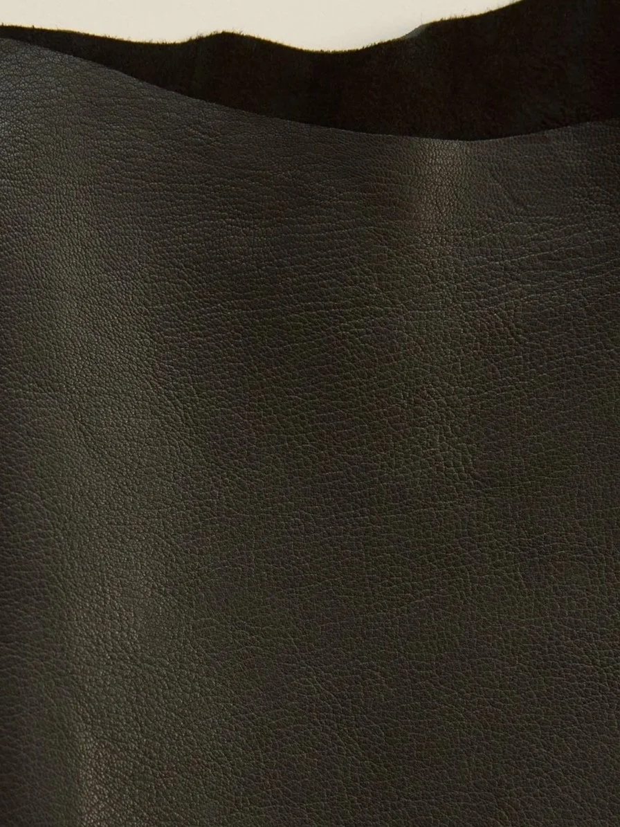Pflanzlich gegerbtes Zickleinleder, gemillt und weich. Offenporig, ohne Coating – leicht, geschmeidig und vielseitig einsetzbar. Schwarz, naturbelassen, entwickelt mit der Zeit eine individuelle Patina.